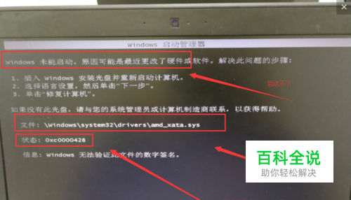 电脑一开机就会出现如下图所示的报错信息 无法启动windows,以前遇到问题,一般重启就好了,今天这个怎么重启都没有用