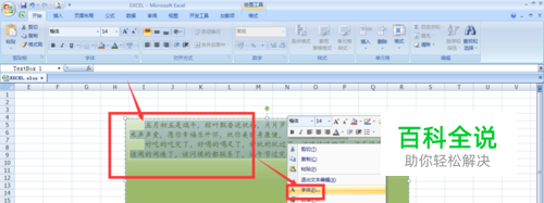 然后我们来设置文字的行间距,如图,将文字选中后,点击右键,选择段落