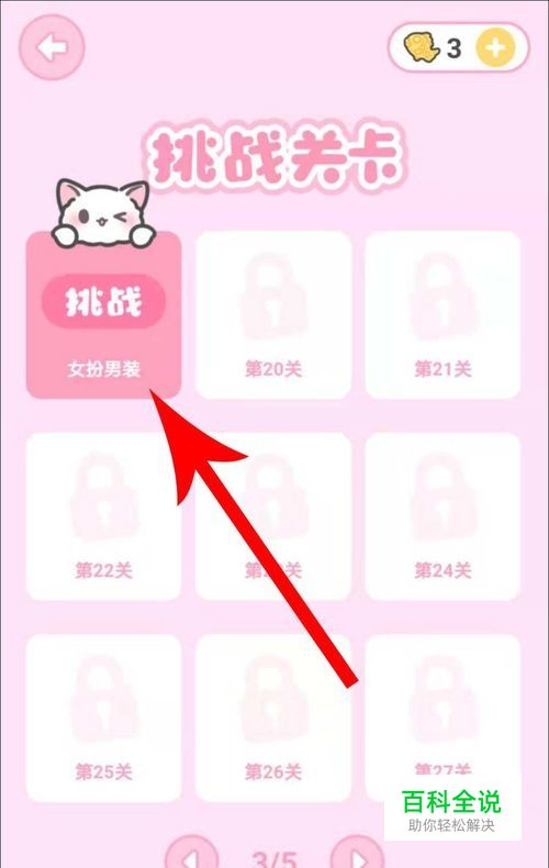 按照顺序,点击第19关“挑战 女扮男装”关卡
