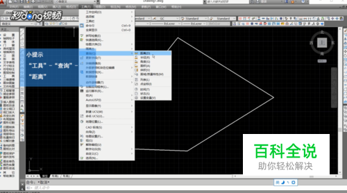 开启CAD软件,打开我们需要测量周长的文件,在菜单栏中选择工具,点击查询,接着鼠标左键单击距离,进入到距离查询命令。