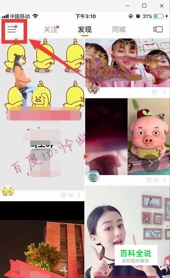打开快手,点击图中“≡”。
