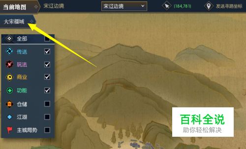 首先点击打开大地图,M键打开,然后选择大宋疆域。