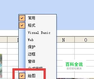 右击工具栏空白处在弹出的菜单中选择“绘图”工具