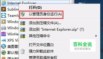 使用超级管理员的方式来打开IE浏览器,如图所示: