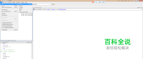 如图所示,点击file,在下拉菜单里面点击new,进一步选择m-file,这些操作是为了建立一个MATLAB程序文件。