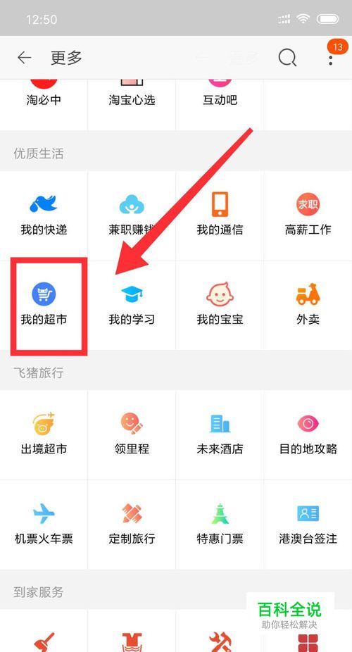 页面下滑至优质生活版块儿,点击“我的超市”