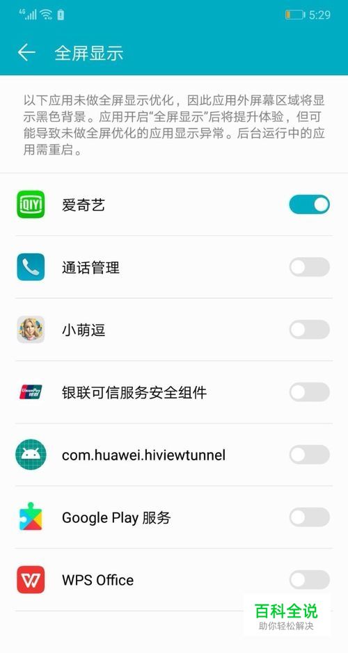 全屏显示就是将不是全屏显示的应用手动设置为全屏显示。