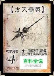 方天画戟 攻击范围4 当你使用的「杀」是你的最后一张手牌时,你可以为这张「杀」指定至多三名目标角色,然后按行动顺序结算之。