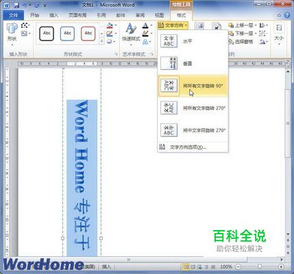 在Word2010中为艺术字设置垂直和水平文字方向