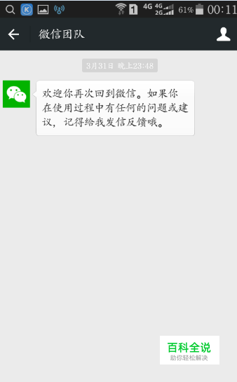 打开微信登陆上账号,登上去后相信咱们就看不到最近的联系人了,只能看见微信团队了