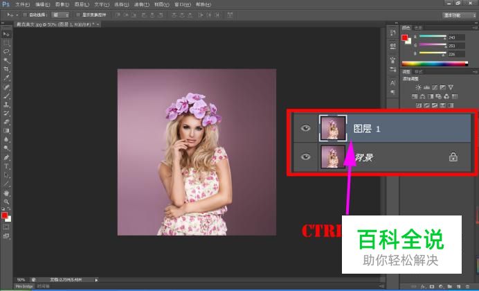 首先打开准备好的素材照片,然后按组合键“Ctrl+J”,复制背景图层,生成“图层1”;
