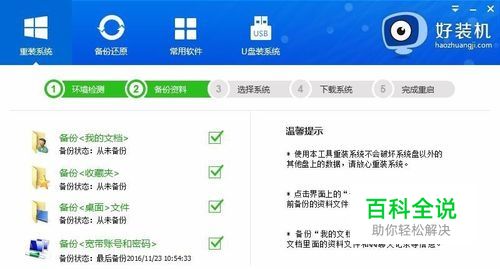 进入资料备份,可以通过勾选备份“我的文档”、“收藏夹”、“桌面文件”等,备份目录是电脑最大剩余空间的一个磁盘上自动新建的HZJDATA目录内;
