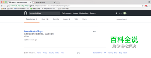 搜索特定项目,Fork该项目有了自己的账号之后,就可以开始我们的GitHub之旅了。为了让没有多少GitHub使用经验的朋友练手,我特地新建了一个项目。在搜索框里输入gogofly/cnblogs后按回车键确认搜索,如下图所示: