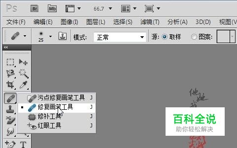最后我们再利用“修复画笔工具”进行细节上的修整处理,单击选择常用工具栏上的“修复画笔工具”,如下图所示:图片来源www.tooopen.com