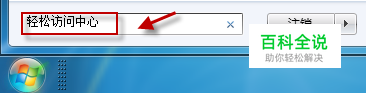 在开始搜索框中输入轻松访问中心,回车。