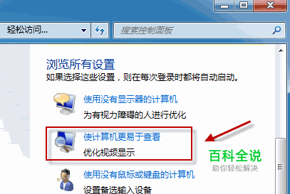 拉动滑块到“浏览所有设置”。单击“使计算机更易于查看”。