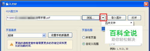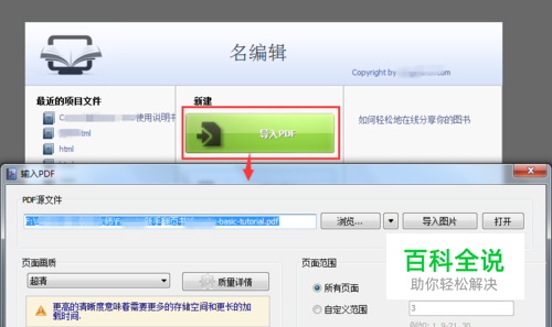 回到“输入PDF”面板,设置页面范围(是导入所有页面,还是自定义导入的范围),自己设定好,然后点击“导入”按钮。
