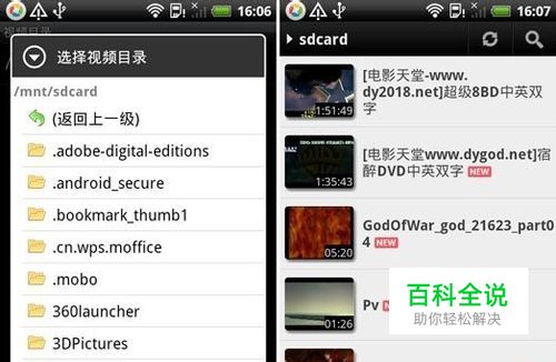 首次进入MX视频播放器时,即便手机SD卡中有视频文件也不会显示,因为我们还没有设置媒体文件夹。点击菜单键选择设置-视频目录,选中文件夹后回到主界面按右上的“刷新”按钮即可。