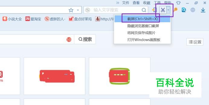 然后我们可以点击搜狗浏览器右上方的小剪刀的下拉箭头,弹出的界面,我们可以看到截图的快捷键了;