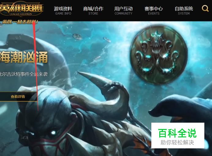 首先你要做的就是登录到英雄联盟的官网,如下图,点击进入