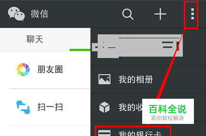 打开微信,以微信5.2为例,在右上角点击三点图标按钮,然后选择“我的银行卡”。在界面中点击“理财通”进入后点击“赎回”按钮,将理财通账户内所有的资金全部赎回到之前的安全卡中。