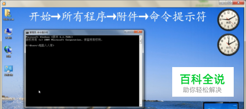 Windows 7 操作系统内含的CMD命令,类似于DOS操作系统的命令。 开始→所有程序→附件→命令提示符。