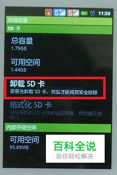 卸载SD卡(安装SD卡)。 如果是安装SD卡,则点击“安装SD卡”,否则点击“卸载SD卡”。 注:我当前系统为android2.3版本,使用机型为联想。其他机型和版本可参看设置。
