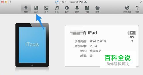 接下来我们点击 iTools 的 “应用”一栏,如图所示