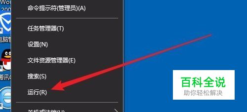 在Windows10桌面,右键点击Windows徽标键,在弹出菜单中选择“运行”菜单项。