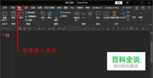 开启我们的PPT软件,打开或新建一份演示文档,然后在顶部的菜单栏中找到“ 插入”菜单。