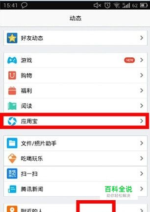 方法其实很简单!!首先打开在手机里打开你的QQ点击动态,然后选择应用宝!!