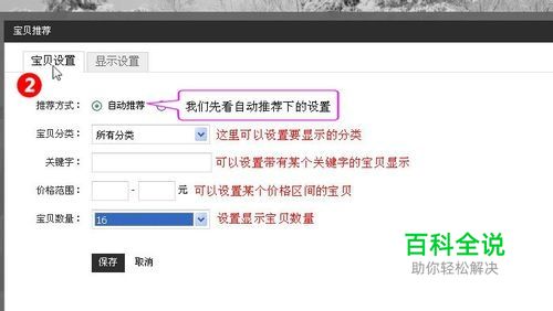 先看一下自动推荐的方式,自动推荐就是根据你设置下面的几个条件,系统自动在这里展示符合你设置条件的宝贝,你可以选择某个分类显示在这里,也可以设置某个价格区间的宝贝显示在这里,更可以设置标题中都包含上某个关键字的,显示在这里。 另下面还有设置这个模块展示的宝贝数量,选择你需要的即可。