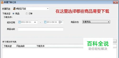 第一步:下载商品 要管理商品,则必须先下载商品到软件商上面,然后才可以进行编辑。 1.打开下载窗口 点击下载按钮,打开下载窗口,如下图: 2.新建下载任务 3.选择下载条件