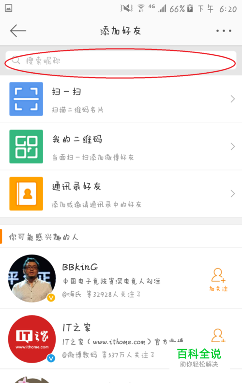 添加好友: 打开微博客户端,在个人主页点击左上角的添加好友。