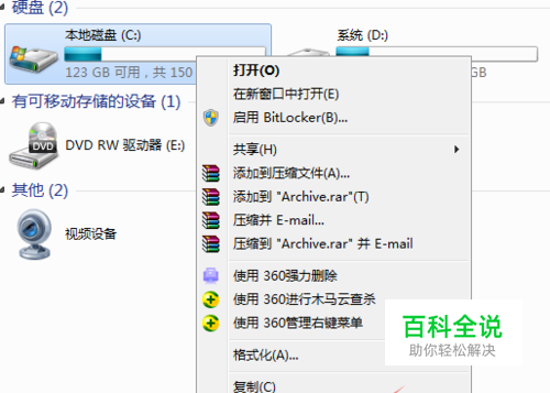 把鼠标放在某个硬盘上右键点击下会看到属性,如图所示!