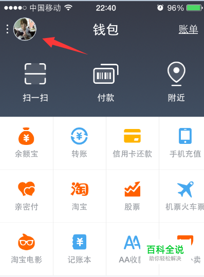 要开通会员特权或领取会员,那先打开进入到新版的支付宝主界面,并点击界面左上我们的“头像”。