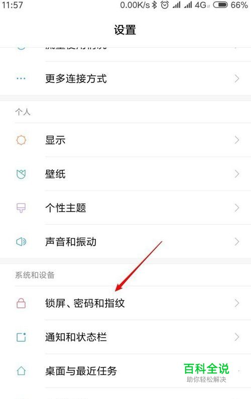在设置页面点击“锁屏、密码和指纹”。