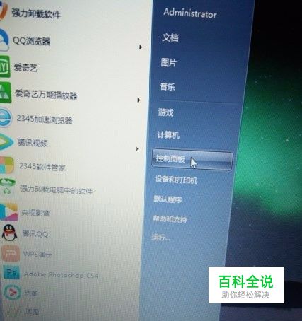 首先我们打开电脑,点击“开始”,然后点击“控制面板”。