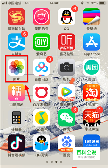 唤醒苹果手机,然后在桌面上点击“ 照片”,进入图库。