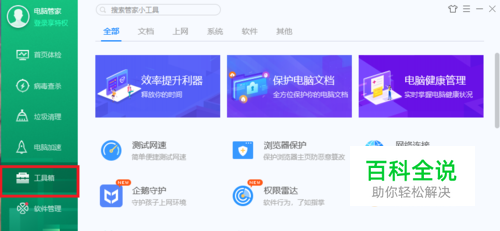 打开管家后,打开左侧的工具箱