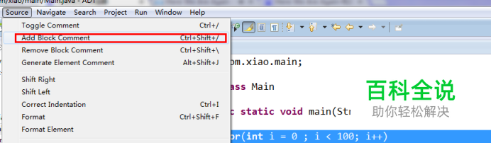 多行注释操作方法。 选中注释部分-菜单栏右上角 source;