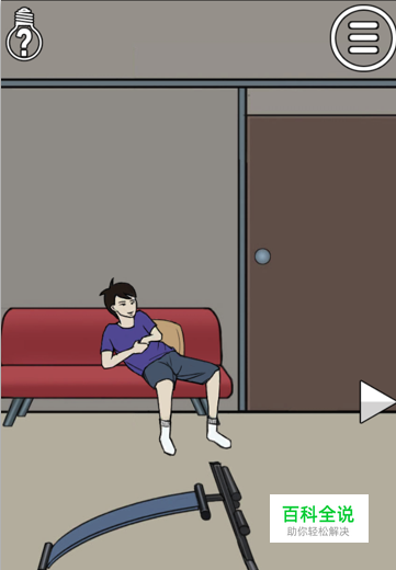 回到第一个画面,点击健身椅,男主角会到健身椅上健身,这个时候我们要快速把剪 刀拖动到枕头处,剪开枕头里面有一本 小黄书,拿到小黄书。当男主角健身完毕后会原位置回到沙发上,我们把 小黄书拖动给男主角。