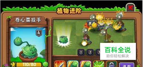 打开手机游戏,进入游戏点击植物,选择你要进阶植物,升级卷心菜植物需要80个碎片,五阶是黄金卷心菜。