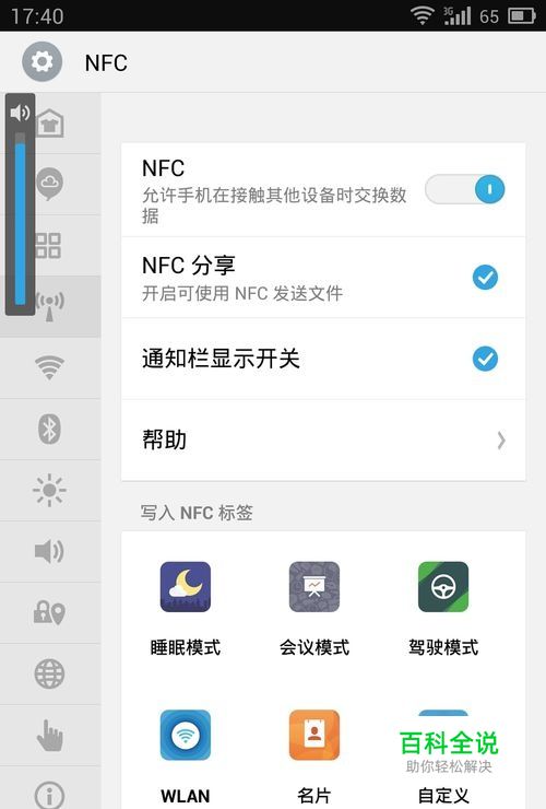 开启NFC功能 以魅族MX3为例,依次打开设置->网络->NFC,开启“NFC”、“NFC分享”两项。