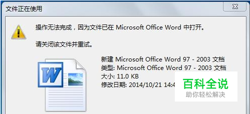 步骤一:就以我们常用的Word软件为例,小编打开了Word文件之后就要将它删除,入场的我们就看到了win7 32位系统提示的错误信息