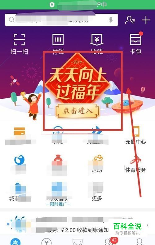 第一步,点击打开支付宝App,在支付宝App首页,进入到集五福界面,如下图