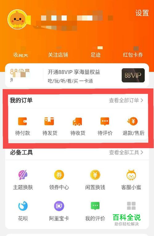 在我的淘宝页面中,找到“我的订单”区域,点击该区域中的“查看全部订单”进入显示我们所有订单的页面。