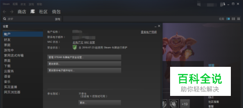 首先打开steam,单击右上角的steam这个单词,就会出来好多选项,进入设置选项。