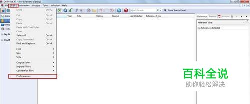 这里,我们以中文期刊为例,设置一种新的参考文献类型Reference type. 打开Endnote软件Open已经建立的Library>>Edit>>Preferences,见图1. 在Endnote Preferences面板的Reference Types下拉列表中选择Unsed1,见图2.