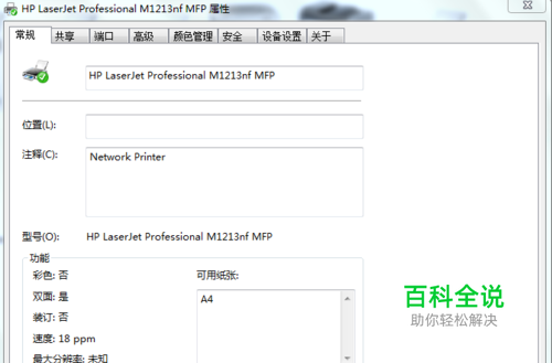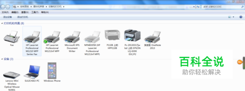 单击“开始”菜单,再单击“设备和打印机”,选择对应的打印机(如HP LaserJet Professional M1213nf MFP);